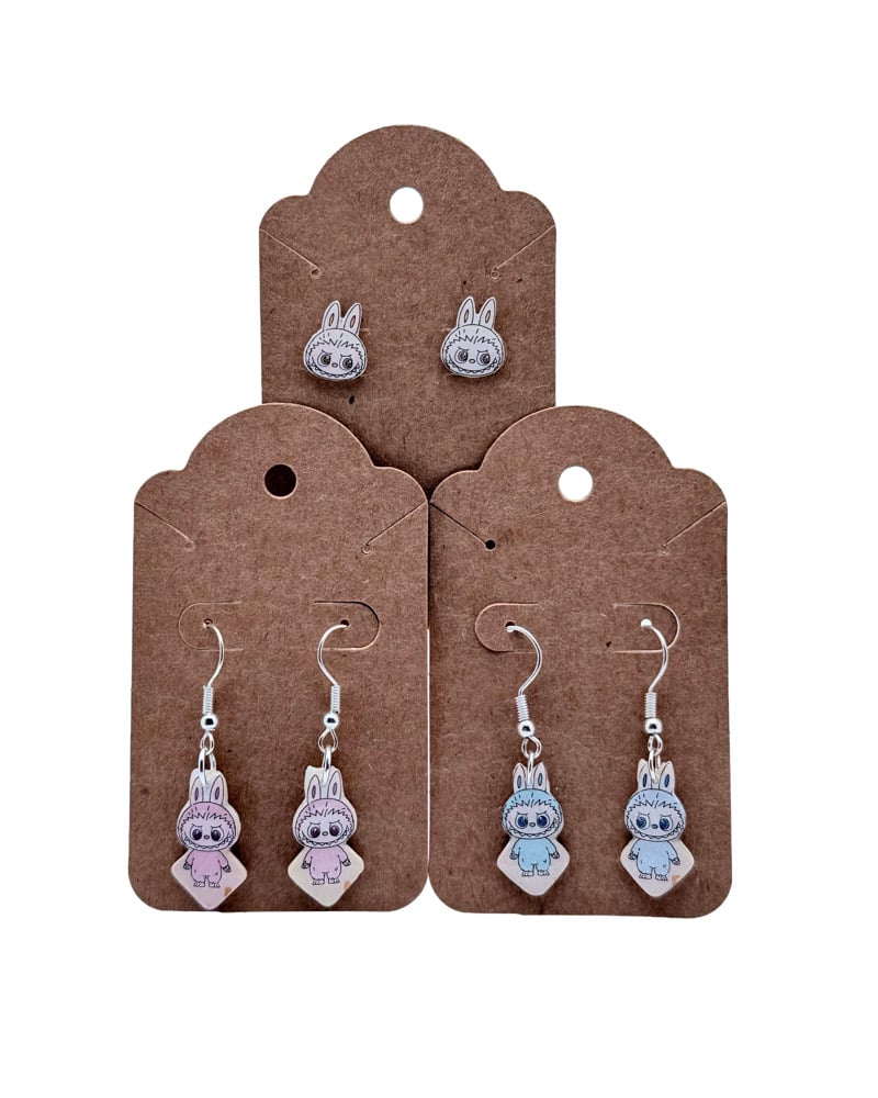These playful earrings are handmade from actual Labubu boxes, giving the iconic mischief-maker a second life as wearable art. Each pair is lightweight, colorful, and made with care. They are a perfect accessory for Labubu lovers and collectors alike.