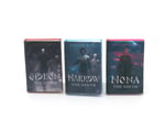 These tiny hardback editions from The Locked Tomb series are a carefully crafted tribute to Tamsyn Muir’s necromantic universe. Each miniature book is fully bound by hand using traditional bookbinding techniques, creating a functional book that opens and closes like its full-sized counterpart.